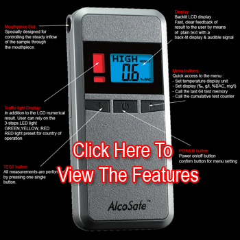 The AlcoSafe™ KX6000S breathalyzer has a unique, easy to read cutting edge easy read Traffic light system', that ensures a non confusing, easy read, accurate breathalyzer result - every time. You can't get it wrong ! Know Your Limit.