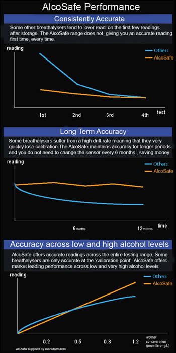 It displays the breath alcohol concentration to UK standard of %BAC and offers superior Breathalyzer accuracy at +/- 0.01% at 0.10% BAC.